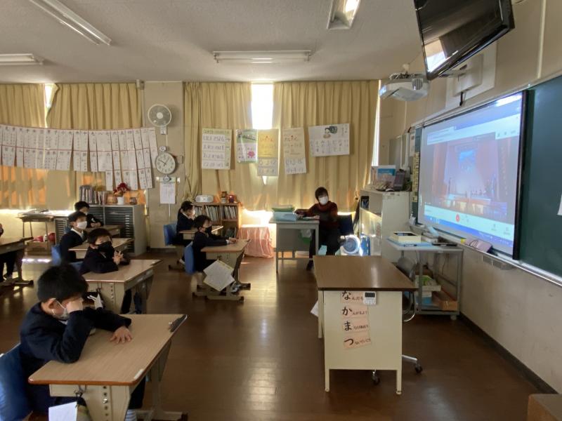 私は、前半部分は職員室でお留守番だったので、1年生教室で流されているリモート映像を見ていました。