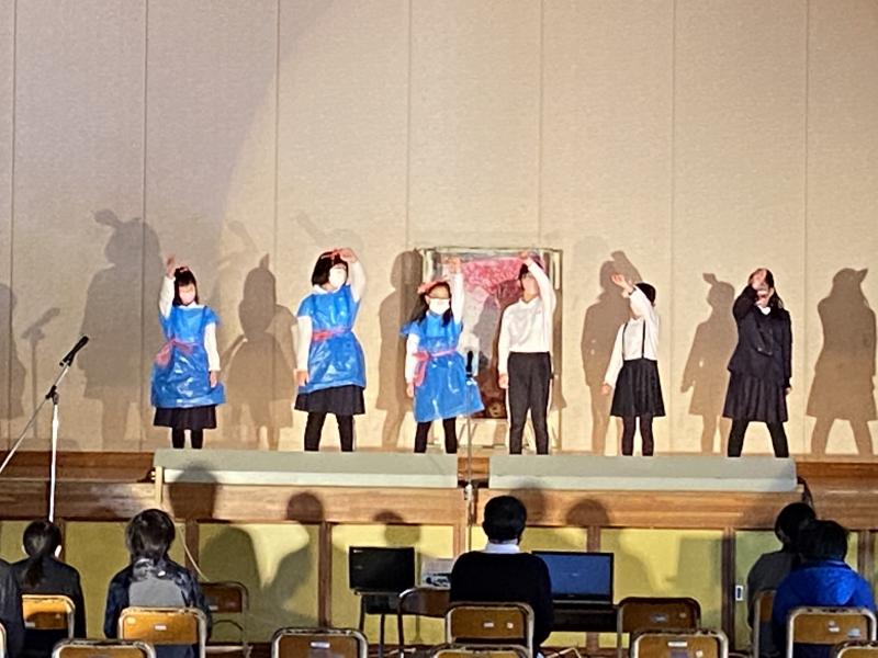 11月9日(土)学習発表会がありました。6年生は、小学校最後の学習発表会で「平和の少女像」を発表しました。修学旅行の平和学習で語り部さんから聞いた「平凡な生活(当たり前の生活)を送れることは幸せなこと」という言葉を今の自分たちの暮らしに照らし合わせ、そして戦争の悲惨さをみんなに訴えようとみんなで取り組みました。劇は、放課後の自分たちの活動から、夏休みの学校キャンプでの肝試し会の出来事、そこから戦争の時代へタイムスリップ。そこで見た、戦争で死んでいく友達、戦争の悲惨さそして友の大切さ。今まで当たり前のように過ごした生活がどんなに幸せなことなのかを、戦争のない世界がどんなに大切なのかを演技しました。今年はいろんな行事で練習時間がとれず少ない時間でしたが、子どもたちよく頑張り、見ている人平和を訴えることができたのではないかと思います。6年生も後4ヶ月で卒業を迎えます。それに向けてもっともっと成長ができるように頑張っていきます。