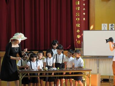 (児童の感想より)●ぼくは、虫の声がなる楽器をいっぱい知りました。ちりんちりんとかしゅらんしゅらんという音がぼくの耳では、いっぱいの虫の声が聞こえてきました。●なんにも声をだしていないのに楽しいパントマイムができてすごいなあと思いました。いろいろしていることがほんとうのようにみえてびっくりしました。