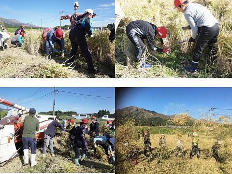 10月31日(木)5・6校時に5・6年生と保護者の方々と稲刈りをしました。稲が穂を垂れていました。5・6年生と保護者の方と一緒に稲刈り。5年生は最初は慣れない手つきで刈っていましたが、慣れてくると次から次へと刈ることができました。6年生は、昨年も行ったので、次から次へと買っていきました。今年は約500kgの餅米を収穫しました。今年も、来年もたくさんの餅米が育つようにと、みんなで切断した稲を蒔きました。なお、この餅米は、赤飯にして中松のお年寄りに11月末に配る予定です。なおその後、餅米はマリ共和国への救済米として送ります。