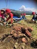 10月16日(水)に3・4年生でいも掘りを行いました。1学期にいもの苗植えを行い、草取りをしながらいも畑の様子を見守ってきました。畑を管理してくださった地域のKさんのご協力、本田先生のご指導の下、今年もたくさんのいもを