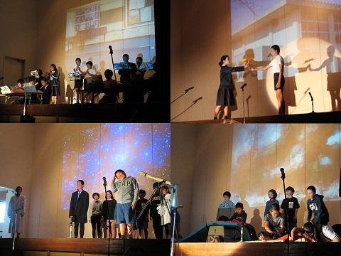 兵庫県震災復興研究センターが熊本地震を機に南阿蘇村で毎年実施している童謡サロン&パントマイムが10月4日(金)に行われました。最初は、童謡「虫の声」に合わせて、何人かの子どもたちが前に出て楽器を演奏し虫の鳴き声を表現しました。後半は、「宇宙からの贈り物」というパントマイム。ナレーションや登場人物の発言もない物語。子どもたちは、役者の方の演技や表情を見ながら何が起こっているのか想像し、子どもたちも物語に引き込まれているようでした。