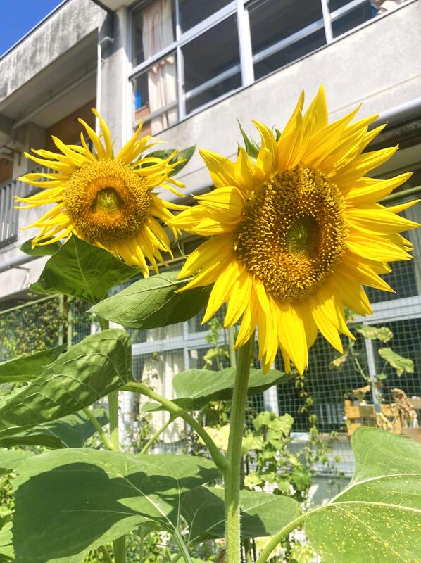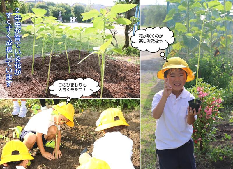 プランターで育てていた花々も綺麗に咲き始めたため、児童が登下校で通る通路沿いに置きました。潤いのある空間になりました。(9/26)