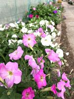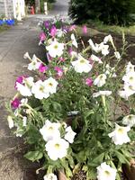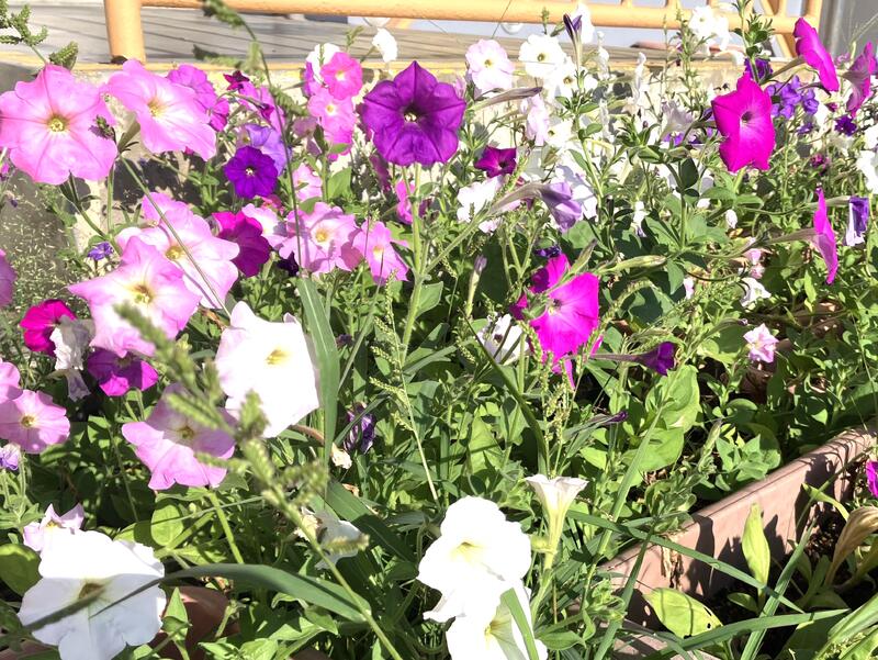 ペチュニアも咲きほこり、2学期始業式の子ども達を出迎えてくれています。(9/1)