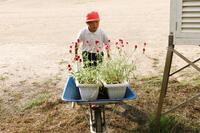 花壇に植えた2年生苗が大きく育っています。1年生も花壇に苗を植えました。(7/17)