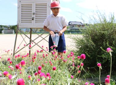 「千日紅(せんにちこう)」の種を取りました。たくさんとれたので来年次の学校にこの花がつながっていくのが嬉しいです。(9/26)