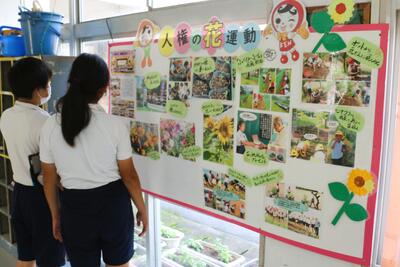 活動の記録を紹介する「人権の花運動」の掲示板を設けました。(6/24)