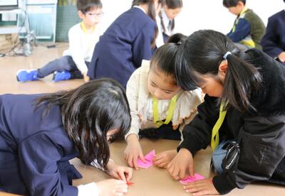 ・1年生との交流では「ポッチャ」や「折り紙」で楽しみました。