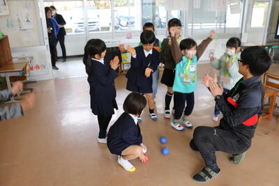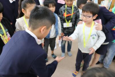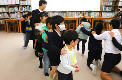 ・5年生との交流では「じゃんけん列車」で大盛り上がりでした。