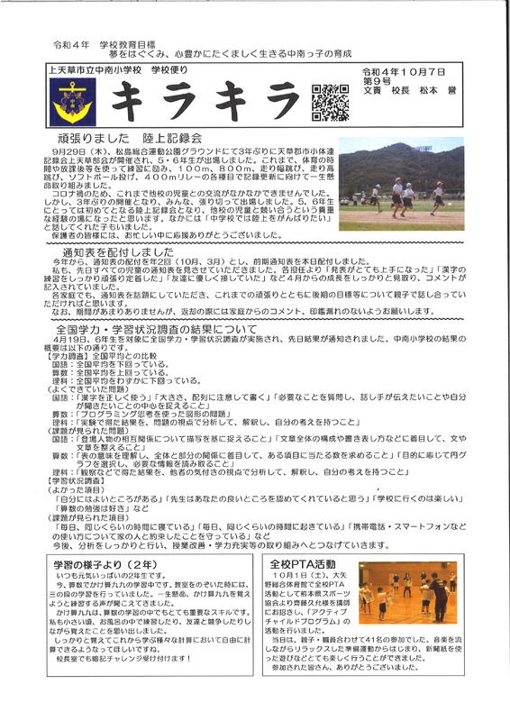 学校だより第9号