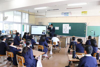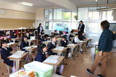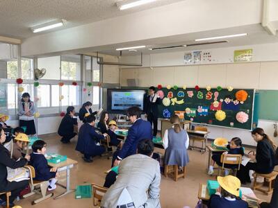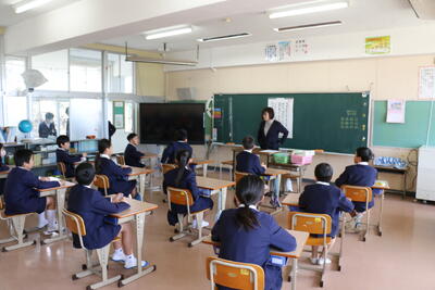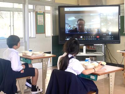 低学年の授業には入られませんが、給食の時間にオンライン集会で紹介がありました。