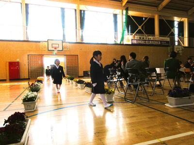 在校生の元気の良い校歌に新入生は少しびっくりしていました