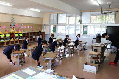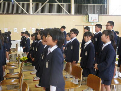 式後の学活では、新しい担任の先生の話をキラキラとした表情で聞いていました。2年から6年生までの児童全員と先生たち全員がそろい、今年度も素晴らしいスタートが切れました。明日、新たに新入生が加わることがとても楽しみです。