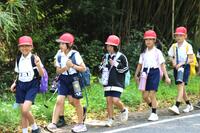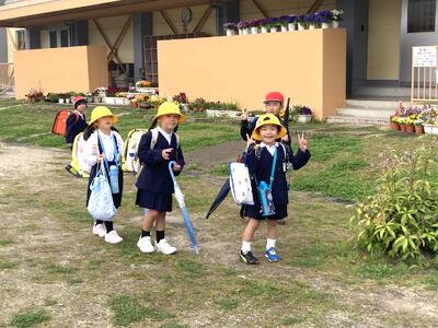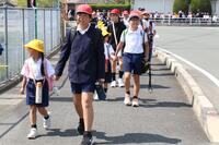 1年生は6年生と、2年生は5年生と一緒に手を繋いで楽しく歩きました。