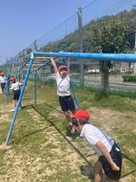天気に恵まれ、本日予定通り歓迎遠足を行いました。まず、体育館で6年生が中心となって計画したレクレーションを行いました。特に「ダルマさんの1日」はとても盛り上がり、笑顔がたくさん見られました。その後、中北小学校を目的地に遠足に出かけました。高校まで約3キロと前年度よりも少し歩く距離が長くなりましたが、低学年の子ども達も元気に歩くことができました。快く運動場やトイレを貸していただいた中北小学校には大変感謝しております。到着してすぐにお弁当を食べましたが、みんな笑顔でとっても美味しそうに食べていました。お弁当の後は、グラウンドや遊具などで自由遊びをしました。中南小にはない「シーソー」がとても人気で順番待ちができていました。たくさんの子ども達の笑顔を見ることができ、とてもよい時間となりました。また、6年生にとっても最高学年としての自覚と自信につながる行事となったようです。