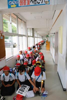 ・高学年が指示を出し、地区別に廊下に整列して静かに迎えを待ちます。とても整然と待つことができました。