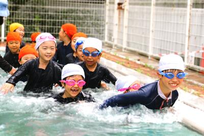 屋外での活動は、急な天候の変化や熱中症、気温、水温など、体調管理以外に配慮しなければならないことがたくさんあります。安全を最優先していくため、プールでの活動できないこともあります。ご理解をお願いします。