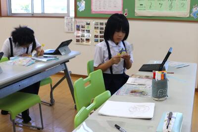 図画工作の授業では、子ども達も絵を描いたり、ものを作ったりする活動を楽しんでいます。図工は、自分の思いや願いを形に表していく創造的な活動です。感性を働かせながら思いっきり楽しみながら活動してほしいです。