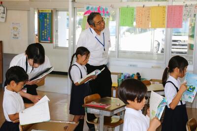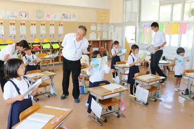 私たちの指導力向上を図るため、教育委員会から教育指導員の沼田先生にお越しいただきました。今回は1年生の国語の授業を参観していただき、その後、指導や助言をいただきました。多くの学びがありましたので、今後の授業に生かしていきたいと思います。