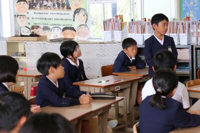 物語の登場人物の会話や行動から、その思いを考える内容で、子どもたちは文章中の言葉に着目しながら真剣に考えていました。