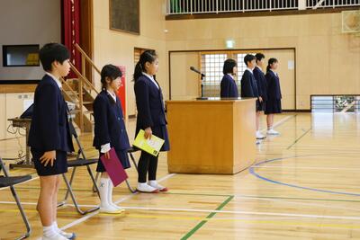 2学期の終業式では、各学級から代表の児童が感想を発表しました。自分で立てた目標に向かって努力したことや反省点、そして次なる目標を、どの子も堂々とした態度で伝える姿が印象的でした。私からは、学校だけでなく家庭でも自分で考え、主体的に行動していこうという話をしました。一人一人の成長を感じるとともに、3学期のさらなる頑張りに期待したいです。