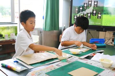 図画工作の授業では、子ども達も絵を描いたり、ものを作ったりする活動を楽しんでいます。図工は、自分の思いや願いを形に表していく創造的な活動です。感性を働かせながら思いっきり楽しみながら活動してほしいです。