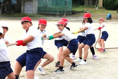 上天草市の陸上記録会が8月の大雨の影響で中止となりましたが、その代わりに学校で「トラック&フィールドディ」を行いました。4・5・6年生が合同で、玉入れや綱引き、借り物競走などに挑戦し、笑顔と歓声が校庭にあふれました。全身を使って思いきり体を動かし、仲間と協力する楽しさを感じることができました。記録会が中止となったのは残念でしたが、子どもたちにとって思い出に残る楽しいひとときとなりました。