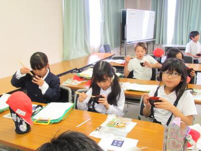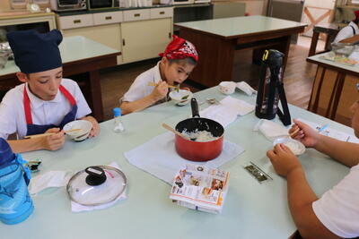 5年生が家庭科の調理実習でご飯を炊きました。集団宿泊学習で飯ごう炊飯の経験をしていたこともあり、どの班も手際よく上手に炊き上げていました。炊きたてのご飯はつやつやで、香りもよく、のりやふりかけなどお好みの味つけでおいしくいただきました。今年の新米だったこともあり、子どもたちからは「とってもおいしい!」という声がたくさん聞かれました。食を通して実りの季節を感じる、温かい時間となりました。