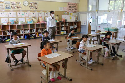 10月28日(火)、次年度入学に向けた就学時健康診断を実施しました。保護者の皆様への全体説明では、教育委員会自立支援相談員の辻川先生より「就学までの子育ての工夫」について貴重なお話をいただきました。子供たちは、優しくお世話をしてくれた5年生と笑顔で交流しながら、少し緊張しつつも真剣に各健診に臨む姿が印象的でした。初めての学校体験を通して、成長を感じる一日となりました。5か月後、元気に入学してくる日を心から楽しみにしています。