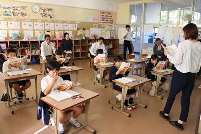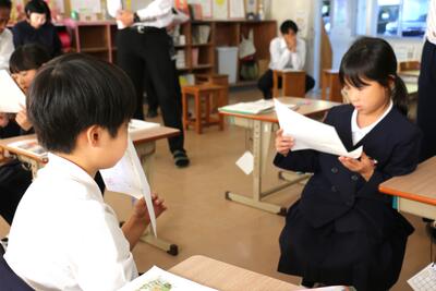 物語の登場人物の会話や行動から、その思いを考える内容で、子どもたちは文章中の言葉に着目しながら真剣に考えていました。