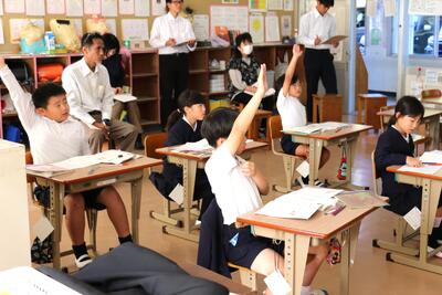考えを積極的に交流したり、タブレット端末を活用して考えを共有したりするなど、とても意欲的に学ぶ姿が見られました。先生方も熱心にメモを取りながら、真剣に授業を参観されていました。