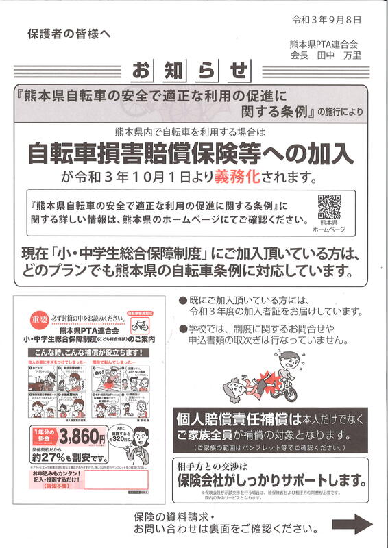 自転車損害賠償保険等への加入について(お知らせ)