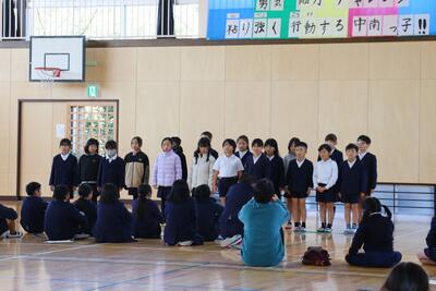 平成音楽大学の中村理恵先生をお迎えし、5・6年生を対象に歌唱指導を行っていただきました。姿勢や声量だけでなく、周りの音を感じながら美しく歌うことの大切さを、実演を通して分かりやすく教えてくださいました。先生の柔らかな語りかけに、子どもたちは自然と引き込まれ、短い時間の中で声の響きや表情がみるみる変化していく姿が印象的でした。また、職員研修では授業ですぐに生かせる具体的な指導方法を学ぶことができ、職員にとっても大変貴重な学びの時間となりました。中村先生に心より感謝申し上げます。