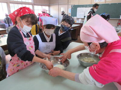 食生活改善推進員(食改さん)の皆様にご協力いただき、郷土料理教室を開催しました。メニューはいきなり団子です。食改さんの丁寧なご指導のもと、楽しそうに調理に取り組み、会場には甘くおいしそうな香りが広がりました。寒い朝でしたが、心まで温かくなるひとときとなりました。食改さん、温かいご支援をありがとうございました。