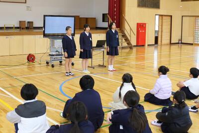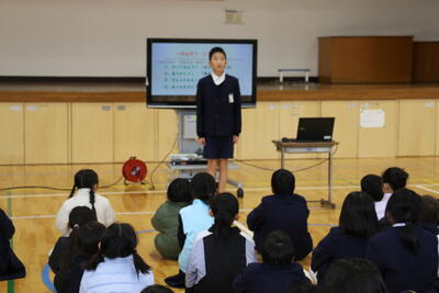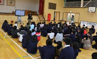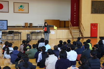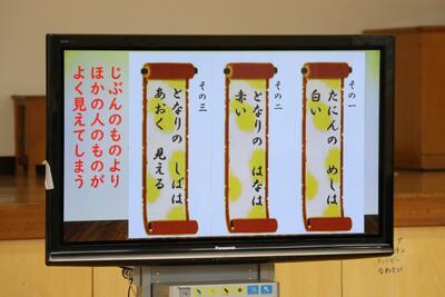 今回の全校集会では、小松野教頭先生からのお話がでした。3つのことわざを手がかりに、「自分のものより、ほかの人のものがよく見えてしまうこと」について、みんなで考えるところから始まりました。続いて、学校生活をより楽しく、よりよいものにするための4つのポイントとして、①「やってみよう」と一歩踏み出すこと、②「ありがとう」と感謝の気持ちを伝えること、③「なんとかなる」と前向きに受け止めること、「ありのままに」自分らしく過ごすことが示されました。子どもたちは、うなずいたり話し合ったりしながら、やさしい雰囲気の中で自分の学校生活を振り返る姿が見られました。