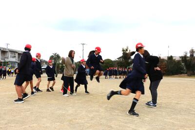 天草郡市小体連主催『長縄大会 CHALLENGE 2025』に向け、今朝は全校で記録会を行いました。朝一番の活動でしたが、子どもたちの熱気で体育館はあたたかく感じられました。各学級が声を掛け合い、息を合わせて跳ぶ姿に、毎朝の練習の積み重ねと成長を実感しました。記録更新に歓声が上がり、跳び終えた後の笑顔と達成感が印象的でした。これから数回、記録会を行います。結果だけでなく、挑戦する過程や仲間を思いやる姿勢を大切に、これからも継続して取り組んでいきます。