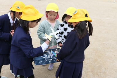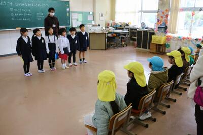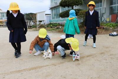 1年生生活科「冬のあそびを紹介しよう」の学習で、子どもたちが作ったたこや風車を使い、「あそか保育園」の園児を迎えました。学校探検で校舎を一緒に体験した後、運動場で元気にあそびました。声をかけ、手を引き、順番を譲るなど、1年生がお世話をする姿が随所に見られ、確かな成長を感じる一日となりました。園児の笑顔に1年生も自信を深め、学び合う