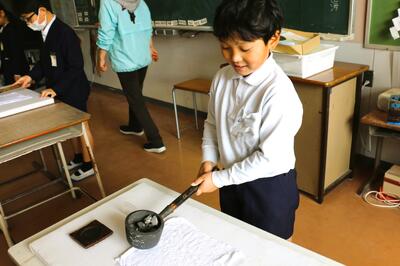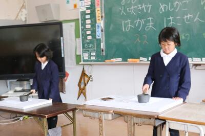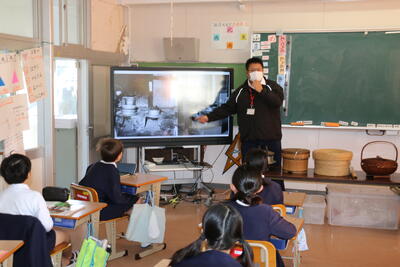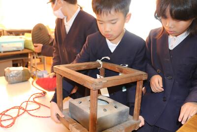 2月12日(木)、熊本県博物館ネットワークセンターからお二人の先生をお招きし、3年生が「昔の道具」について学習しました。子どもたちは、実際に水を運んだり、洗濯板で洗濯をしたりと、昔の暮らしを体験しました。道具の工夫や当時の人々の苦労に気付き、今の生活との違いを実感する貴重な時間となりました。学びを通して、昔の人の知恵や努力に思いをはせることができました。