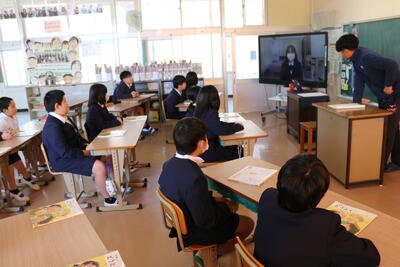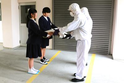 給食週間にあわせて、給食委員会の子どもたちが児童から集めた「ありがとう」の手紙を広用紙にまとめました。毎日、安全でおいしい給食を届けてくださる配送の方へ、感謝の気持ちを込めてお渡ししました。代表児童が心を込めて手渡す姿から、支えてくださる方々への思いやりと感謝の心の育ちを感じる、あたたかなひとときとなりました。