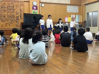 11月21日(金)、学習発表会を行いました。1・2年劇「ごめんねメリー」、3・4年劇「鬼滅の刃 熊本城修行編」、5・6年発表「広めよう、山都町」という演目で発表を行いました。どの学年も趣向を凝らした内容で、全員が一生懸命練習した成果を発揮して発表していました。
