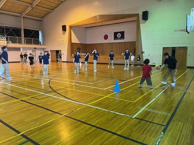 その後、体育館に移動し、みんなでドッジボール!高校生が受け止めたボールを、お姉さんらしく小学生に渡して投げさせてくれる場面もあり、みんなとても楽しそうでした。