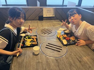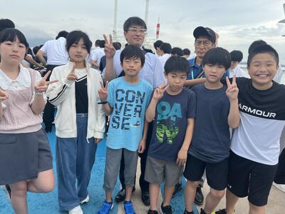 フェリーに乗ったら早速、甲板に出て外の景色を楽しんでいました。船内では自由に動けたので、矢部小のお友達と楽しそうにおしゃべりする姿も見られました。