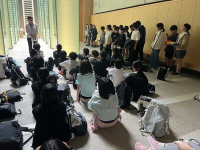 祈念館で平和集会を行いました。原爆でなくなった方々に黙祷を捧げ、平和の誓いを行いました。
