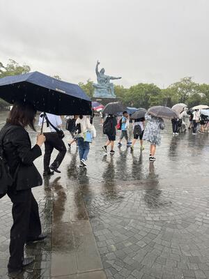 雨の中、爆心地、平和公園、如己堂を回りました。