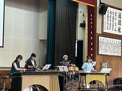 今回は、NHK交響楽団打楽器奏者の植松透氏を中心に結成された打楽器アンサンブル「トムトム」による打楽器のコンサートでした。子どもたちも知っている曲も多く、ノリノリで聞き入っていました。