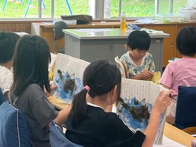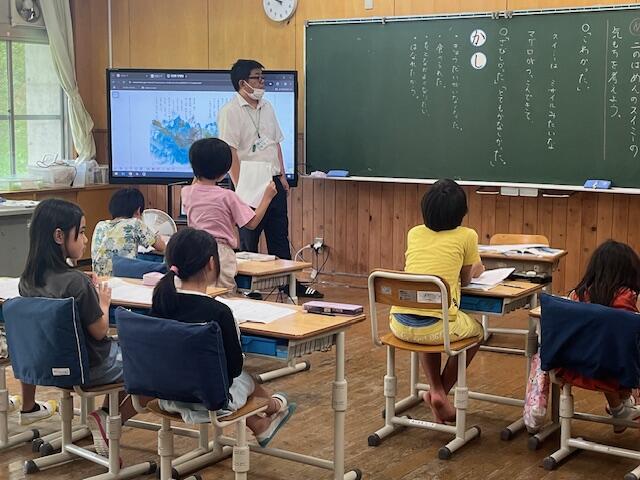 2年生「スイミー」。読み取ったことを音読に表れるように読むことについて学習していました。
