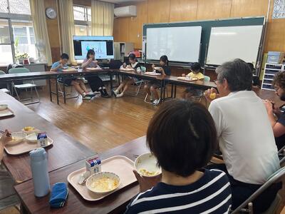 昨年度から行っている交流給食。昨年度、いろいろな職員との交流を目的としてスタートし、途中から縦割り班の子どもたちを交流させる目的を追加し、形式を変えながら行ってきました。