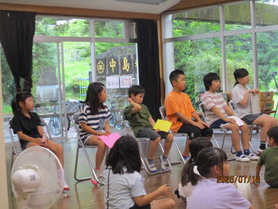 ホールにて、校長による1学期の振り返り、生徒指導担当から生活面の決まりや交通事故、川・海等での事故、自然災害による事故防止等について、養護教諭からは、夏のくらし方についての講話を行いました。