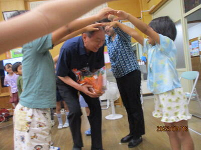 懐かしい遊びです。縦割り班が三つあるので、3箇所に別れ、班長さんを中心に始めていました。最初は、静かに始まりましたが、そのうち大賑わいになりました。とても楽しそうな様子でした。