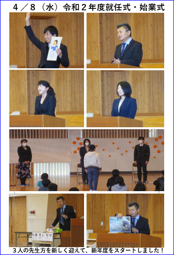 全校児童37名の少人数ですが、上級生から下級生まで、子どもたち、先生と保護者、そして、中島地区の地域の方々とのきずなを大事にした学校づくりに向けて、令和2年度を踏み出していきます。